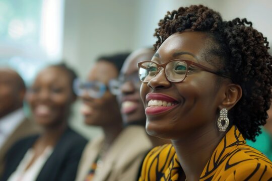 A group of individuals seated adjacent to each other, possibly in a meeting or social gathering
