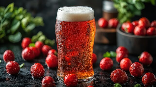 Refreshing strawberry beer in a glass