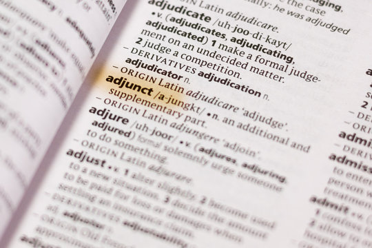 Ivanovsk, Russia - November 19, 2018: The word or phrase Adjunct in a dictionary.