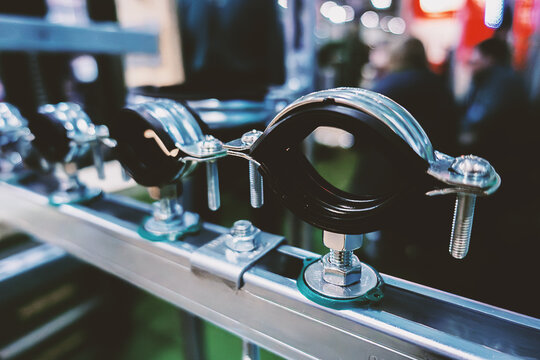 Fastening system. Double-screw pipe clamp with a locking ring.