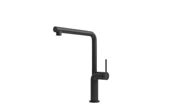 Black microphone on adjustable arm, isolated on white background, showcasing professional audio equipment for recording or broadcasting, ideal for podcasting or streaming setups
