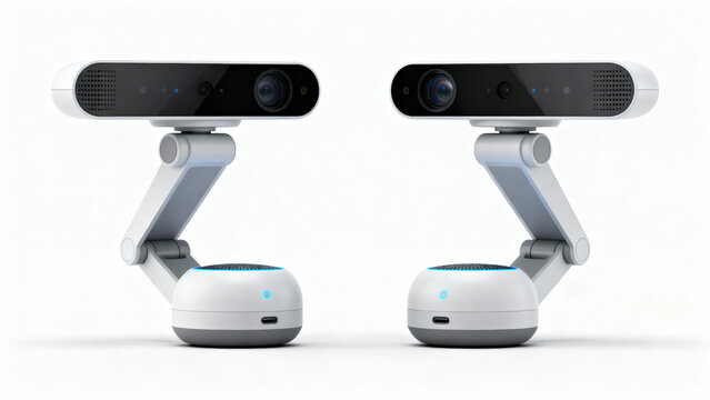 Modern robotic cameras with adjustable mounts for video conferencing and streaming purposes
