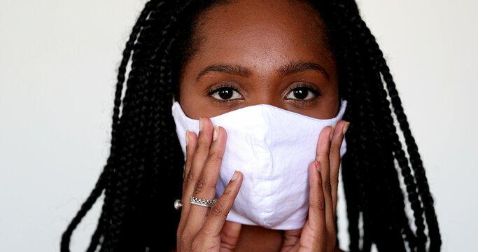Young woman wearing protective face mask in relaxed home environment