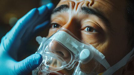 Close up of healthcare professional adjusting an oxygen mask for patient in distress