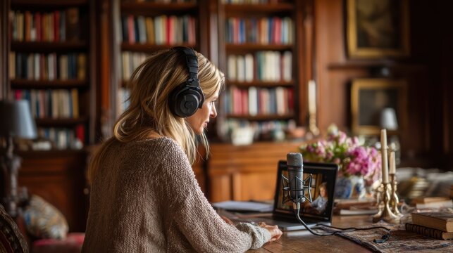 Podcast recording collaboration at home studio with microphones