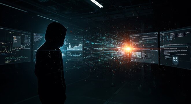 Lone Hacker in Tech Corridor