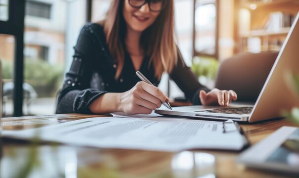 business man working in the office with computer and documents