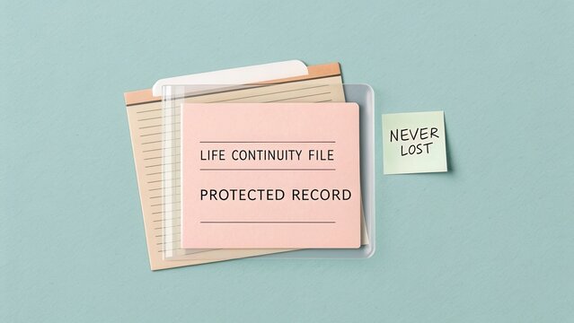 Life Continuity File with Protected Record on Colorful Background for Document Management and Organizational Purposes