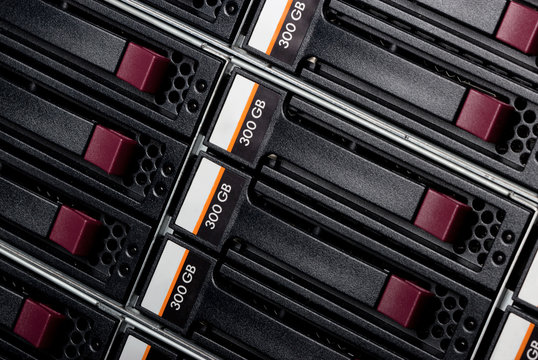 Disk array in datacenter.