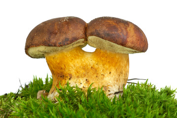 Pair of adnate boletus badius mushrooms