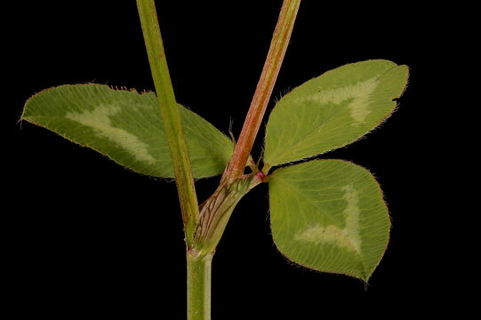 Red Clover (Trifolium pratense). Stem Section and Leaf Closeup