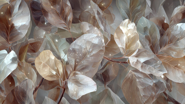 A close-up shot of dry leaves in autumn shades, capturing intricate details of their texture and color
