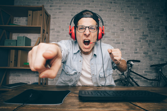 Young man playing game at home and streaming playthrough or walkthrough video