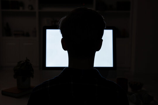 Silhouette of the back of a student in empty classroom facing bright sunlit windows, representing solitude, education challenges and reflection, moody dramatic atmosphere with lens flare effects.