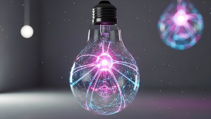 Glowing Light Bulb with Neon Network, Innovation Concept, Futuristic Technology