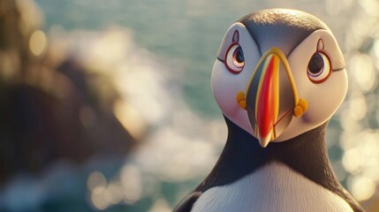 Puffin Perched on Cliff: Coastal Wildlife Illustration