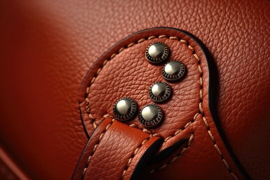 A detailed close-up of a leather purse adorned with buttons. Perfect for fashion blogs or articles about accessories