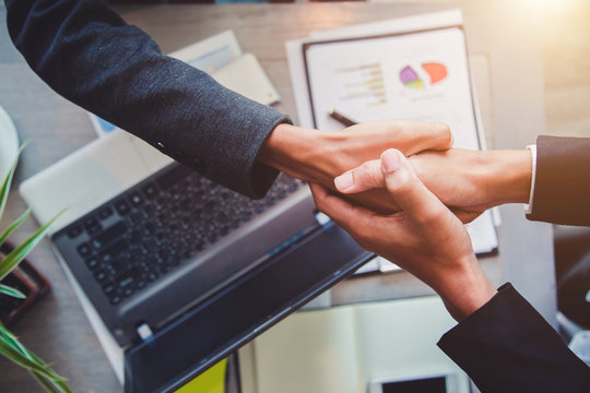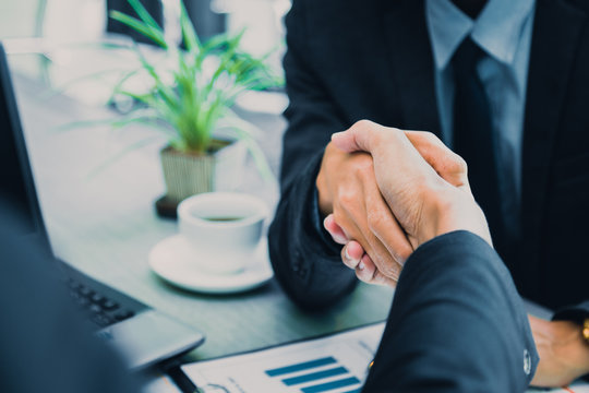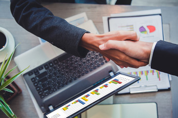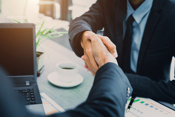 Business people shaking hands, partner finishing up a meeting to discuss the situation on the market Successful team leader entrepreneurship .