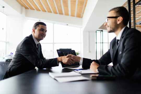 Sell concept. Two men shake hands and get agreement in their deal in office.