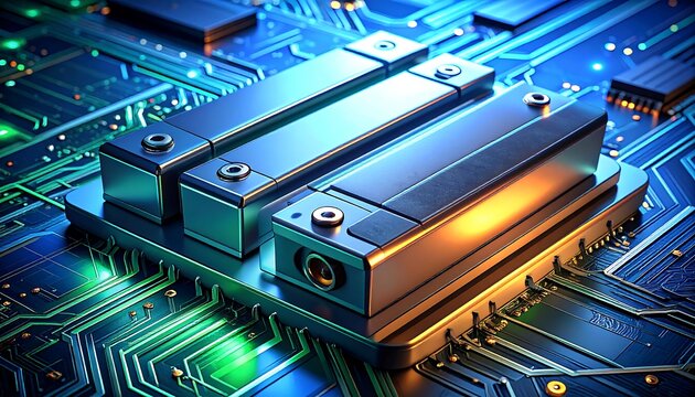 Close-up view of advanced computer components mounted on a circuit board, showcasing intricate details and vibrant lighting effects.