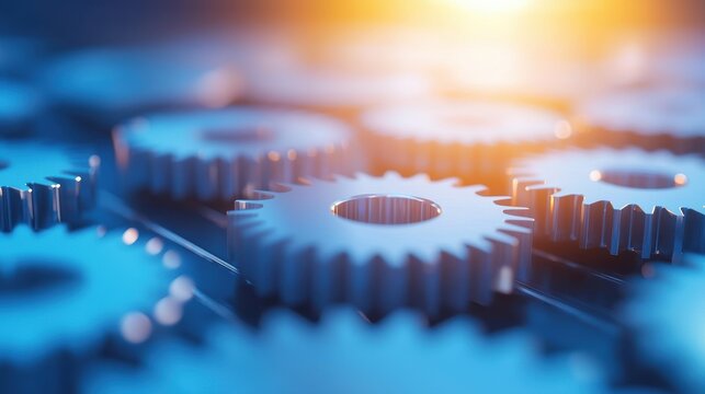 Advanced Industrial Automation in Factory. A detailed view of industrial automation with robotic arms actively assembling machinery, representing modern manufacturing technology.