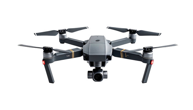 Modern black professional drone with camera and four propellers, ready for aerial photography and videography, showcasing advanced technology and sleek design.