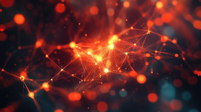 Abstract network of luminous nodes and lines creating a visual representation of data transfer, digital connectivity, and advanced technological concepts