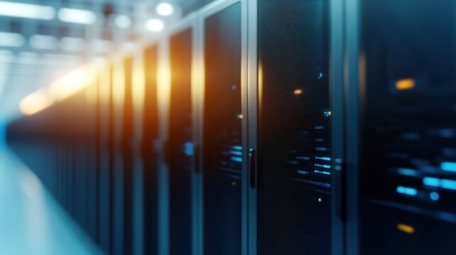 Data center operations server room technology infrastructure digital environment close-up view modern data management solutions