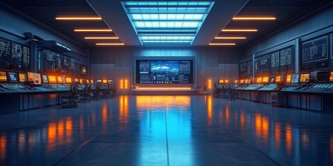 Futuristic Control Room: Neon Lights and Advanced Technology