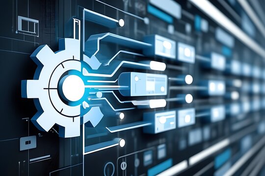 Dynamic AI gears and data servers symbolize advanced intelligence and intricate technological processes driving innovation and future development
