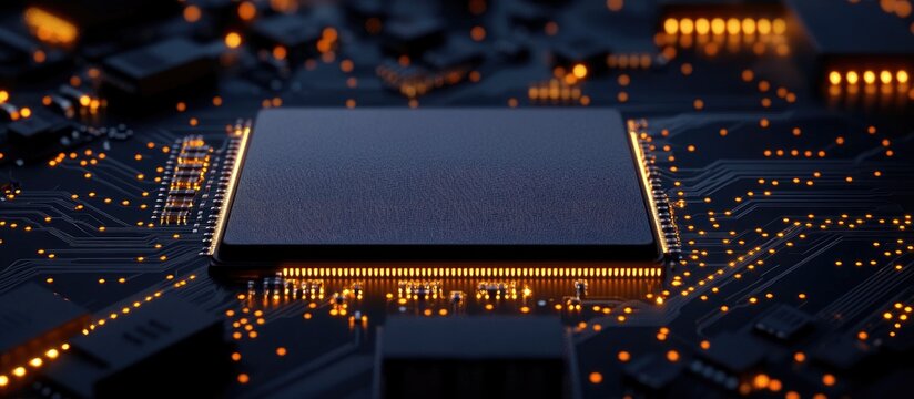 Futuristic microchip with glowing cloud symbol represents cloud computing technology. image conveys innovation and connectivity in digital environment, showcasing advanced data processing