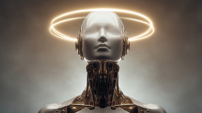 Futuristic AI Artificial Intelligence robot with glowing halo and advanced technology and sleek design