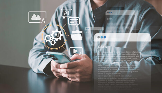 Artificial Intelligence Network Connection Concept  Business Technology Data Analysis Visualization with Human Interaction and Digital Transformation