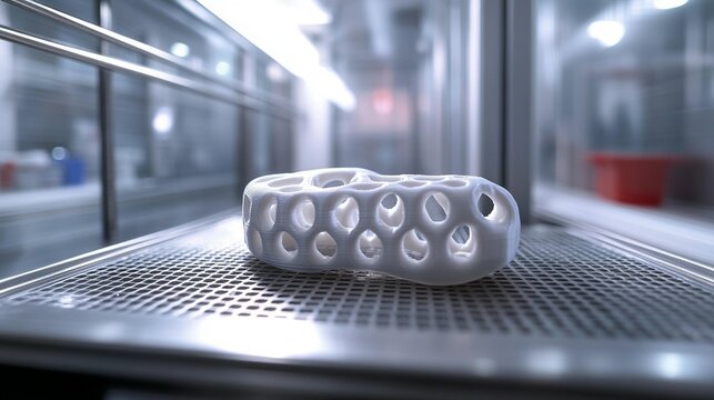 3D-printed white lattice structure inside a lab.