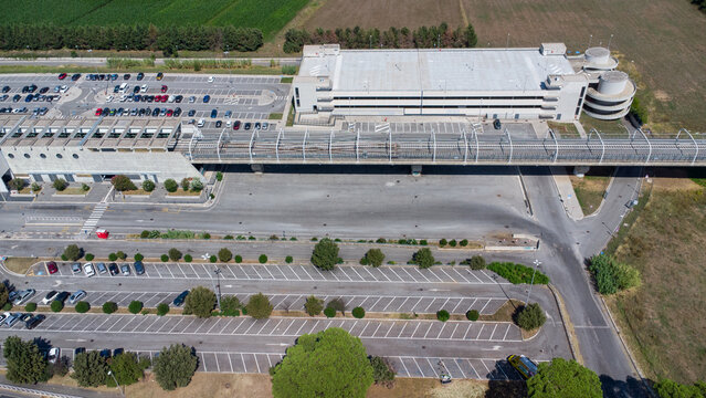 Industrial factory exterior with metal infrastructure