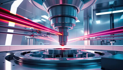 Blue laser equipment in use within an advanced scientific laboratory, focusing on precision technology and innovative research, with blue lighting highlighting the high-tech environment.