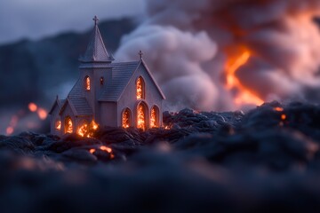 A terrifying figure with glowing eyes advances menacingly, framed by a burning sky.