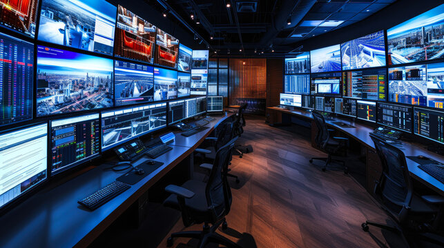 High-tech operations center with logistics professionals using advanced tools to optimize supply chain management