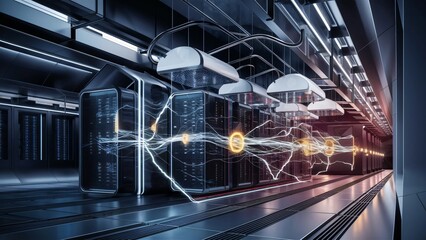 Advanced server room with data visualization concept