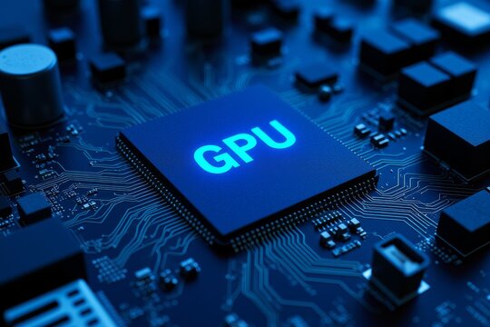 Neon GPU Graphic Processing Unit on Circuit Board in Dark Setting