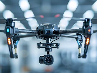 Close up View of Intricate High Tech Drone Showcasing Advanced Aerial Filming Technology