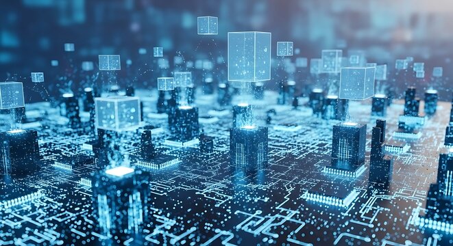 Futuristic Cityscape Digital Network Architecture with Abstract Technology
