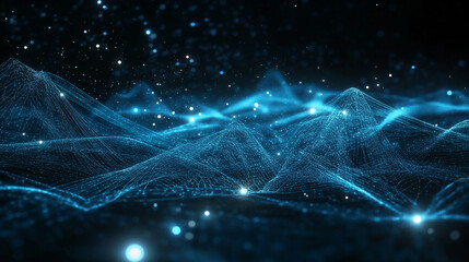 Vibrant Blue Digital Planet with Glowing Particles in Space