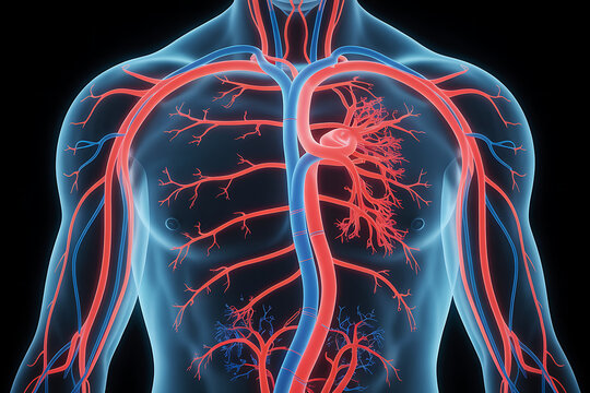 3d visualization of the human cardiovascular network with arteries veins and capillaries highlighting aortic branches blood flow and vascular anatomy for cardiology study and education