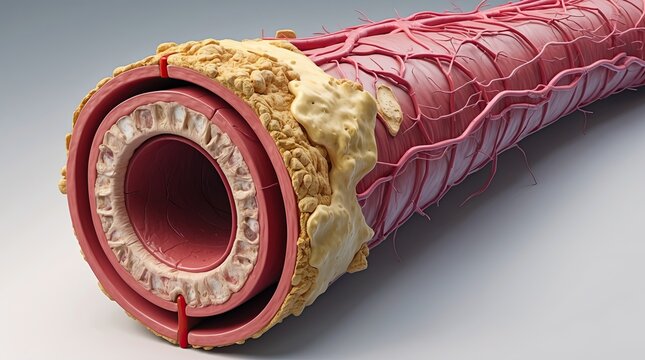 Atherosclerosis: artery cross-section with plaque — a visual metaphor for internal struggle and biological architecture