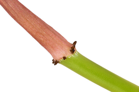 Small stubs of growing aerial roots at nodes of on tropical Philodendron houseplant stem