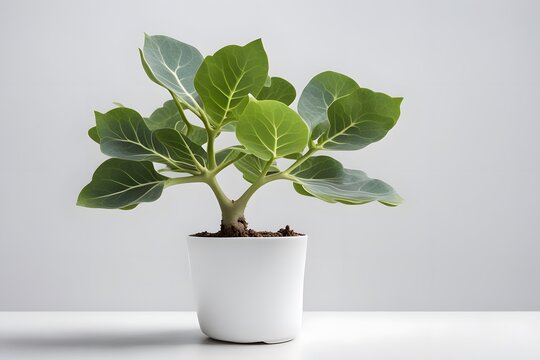 Bengal fig plant in white pot white background, AI Generated