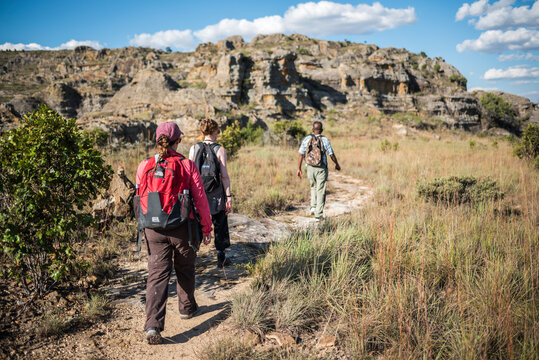 Tourists hiking in Isalo National Park, Ihorombe Region, Southwest Madagascar