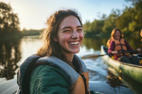 Woman smiling during kayak trip