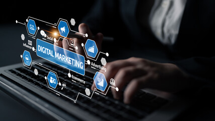 A vibrant background featuring social media icons like hearts, comments, and profile pictures. Ideal for promoting advertising agencies, digital marketing, and online campaigns. Generative AI
